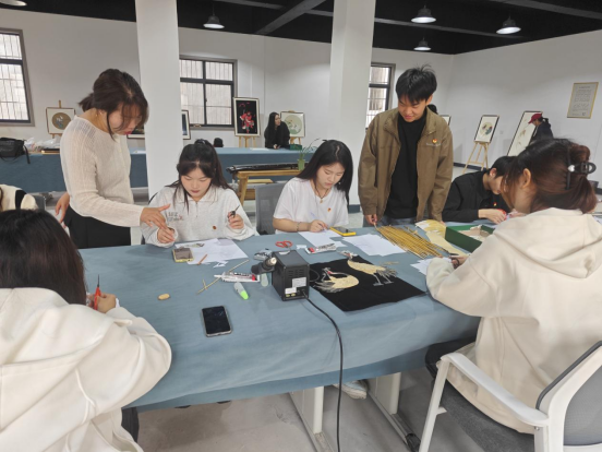 4月10日,藝術(shù)與設(shè)計(jì)學(xué)院黨總支副書記王俊平、教研主任張婉、專職教師關(guān)琪、劉洋帶領(lǐng)沈燦等9名設(shè)計(jì)專業(yè)學(xué)生走進(jìn)非遺“麥秸畫”傳承人楊麗工作室,開展了一場沉浸式非遺文化實(shí)踐教學(xué)活動。活動通過“看、學(xué)、做、創(chuàng)”四維教學(xué)模式,架起傳統(tǒng)工藝與現(xiàn)代設(shè)計(jì)的橋梁,為非遺傳承注入青春力量。