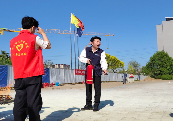 全員安全集合后,消防人員開始細致講解滅火器的使用方法,他手持滅火器,從滅火器前期的狀態(tài)檢查,到握住噴管的正確姿勢,再到噴射時精準對準火源根部的技巧,逐步拆解動作,深入淺出地講解著。