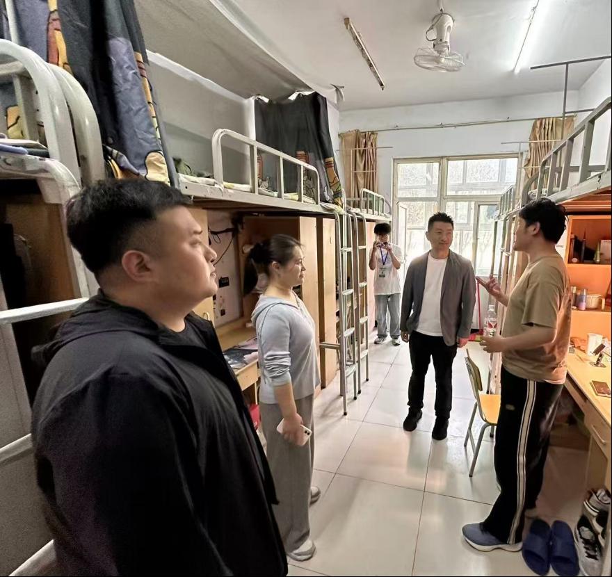 檢查過(guò)程中,兩院黨政負(fù)責(zé)人與學(xué)生親切交流,傾聽生活訴求。環(huán)境工程學(xué)院行政負(fù)責(zé)人杜瑞濤強(qiáng)調(diào):“宿舍是學(xué)生的‘第二課堂’,安全衛(wèi)生不僅是管理要求,更是育人責(zé)任。”針對(duì)發(fā)現(xiàn)的共性問(wèn)題,兩院也做了整改部署。