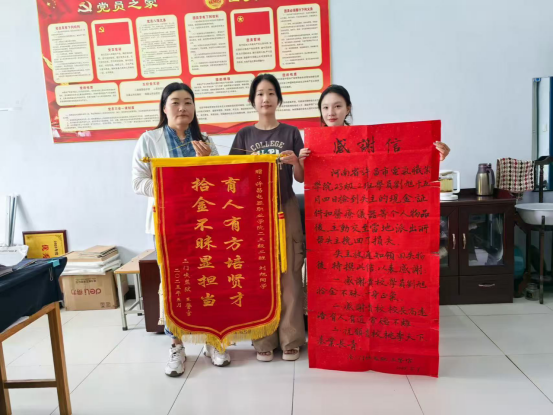 錦旗寄謝意,善舉暖人心。5月13日上午,一面繡有“拾金不昧顯擔(dān)當(dāng),育人有方培賢才”的錦旗和一封飽含深情的感謝信,送到了藝術(shù)與設(shè)計(jì)學(xué)院辦公室,為我院增添了一抹溫暖亮色,也讓2023級(jí)嬰幼兒托育服務(wù)與管理2班學(xué)生劉旭拾金不昧的事跡廣為人知和流傳。