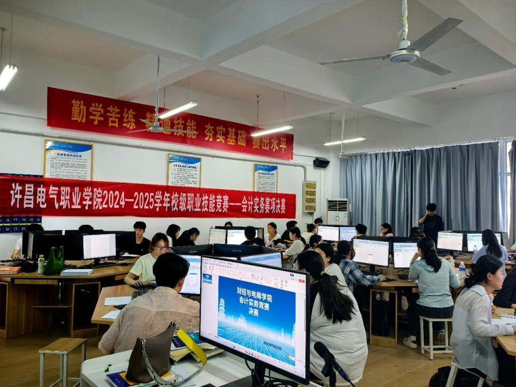 為全面提升學(xué)生職業(yè)素養(yǎng)與崗位核心競爭力,財經(jīng)與電商學(xué)院積極響應(yīng)2024—2025年校級職業(yè)技能競賽。其中,會計實務(wù)賽項歷經(jīng)充分籌備,終于迎來高潮。5 月20日,決賽在實訓(xùn)E樓 211室正式打響。