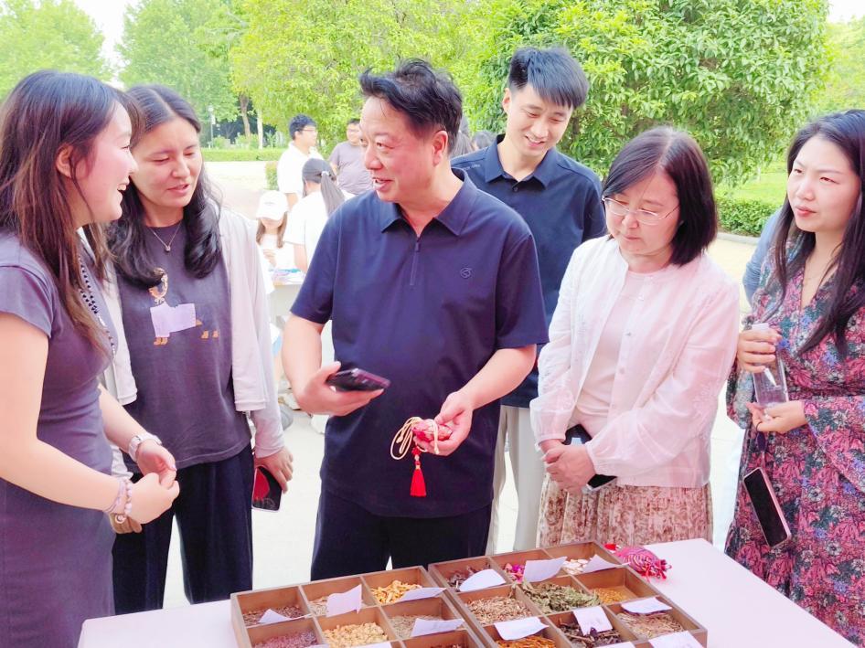 活動期間,學校院長高遠浩、學生處處長楊紅培深入活動現(xiàn)場,參觀過程中,領(lǐng)導們對非遺作品的創(chuàng)新表達與精湛工藝給予高度肯定和贊揚,同時,也提出了對我院未來發(fā)展的期許與建議。