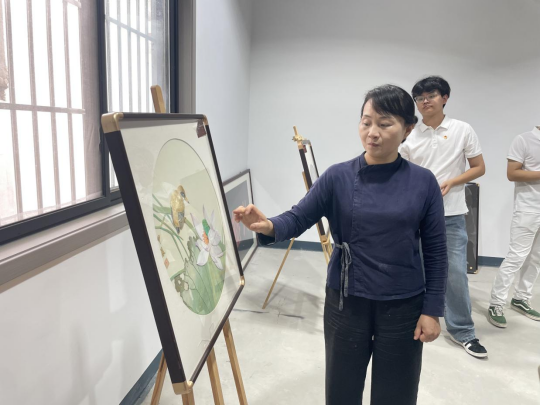 活動(dòng)現(xiàn)場,第四代麥秸畫傳承人楊麗老師熱情接待了師生一行。她首先帶領(lǐng)大家參觀了麥秸畫工作室,展示了一幅幅精美絕倫的麥秸畫作品,從靈動(dòng)的花鳥魚蟲到雄偉的山河風(fēng)光,再到栩栩如生的人物形象,每一幅畫都凝聚著楊麗老師的心血和對麥秸畫藝術(shù)的熱愛。學(xué)生們被這些精美的作品深深吸引,不時(shí)發(fā)出陣陣驚嘆。