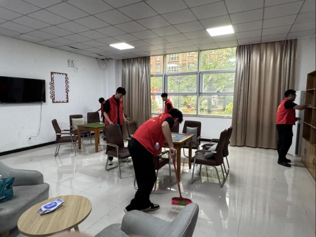 最后,“許電幫幫團(tuán)”深入社區(qū)公共區(qū)域,進(jìn)行環(huán)境清潔、設(shè)施整理等工作。成員們身著統(tǒng)一志愿服裝,分工明確、協(xié)作有序,清掃地面垃圾、規(guī)整公共桌椅、擦拭活動(dòng)設(shè)施,以實(shí)際行動(dòng)改善社區(qū)環(huán)境面貌。