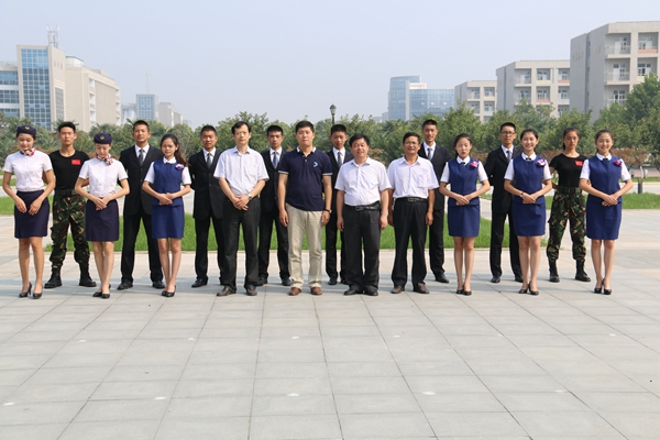 東方領(lǐng)航空乘禮儀表演隊(duì)與兩校領(lǐng)導(dǎo)合影留念