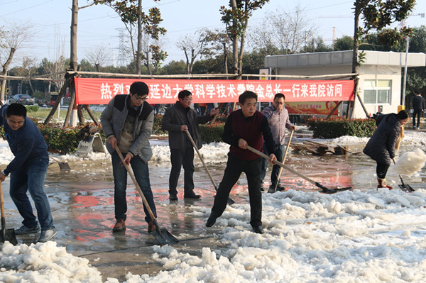 雖然風(fēng)力達(dá)到4-5級(jí),氣溫更是低至幾度,但絲毫未動(dòng)搖大家的熱情。他們揮動(dòng)手中的掃把和鐵鍬,不畏嚴(yán)寒,除冰去凍清理積雪。面對(duì)地上的積雪和薄冰,有的掃,有的鏟,有的合伙推,大家心往一處想、勁往一處使,形成了一幅“汗水與積雪相融,責(zé)任與干勁一體”的動(dòng)人場(chǎng)景。僅僅兩個(gè)多小時(shí)的時(shí)間,原本雪白一片的校園主干道,就變成了一條“綠色通道”,為師生安全出行創(chuàng)造了最佳的交通環(huán)境。