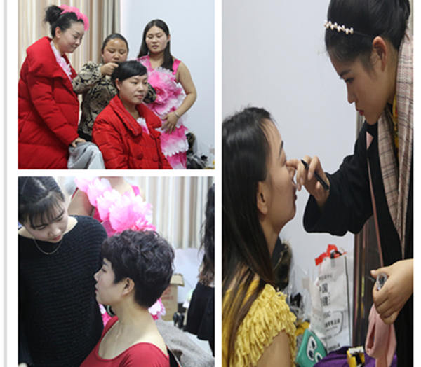 演出開(kāi)始前演員們正在后臺(tái)化妝