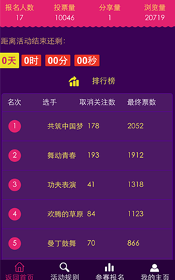 我最喜愛的元旦聯(lián)歡晚會(huì)節(jié)目投票活動(dòng)已經(jīng)圓滿結(jié)束。截止1月10日24點(diǎn),總投票量達(dá)到10046,瀏覽量已經(jīng)達(dá)到20719,《共筑中國夢(mèng)》以2052票的絕對(duì)優(yōu)勢(shì)位居榜首,《舞動(dòng)青春》緊隨其后,以1912票位居第二名。感謝廣大師生對(duì)本次節(jié)目評(píng)選活動(dòng)的參與支持。排名情況見截圖: