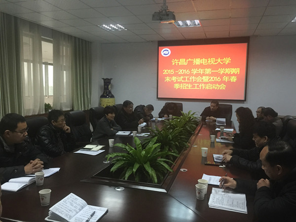 元月5號上午,在學院二樓會議室召開許昌廣播電視大學2015-2016學年第一學期期末考試工作會暨2016年春季招生啟動會。副院長商淑敏,成人教育部(電大)負責人郭松山、施軍,各縣(市)電大負責人及成人教育部(電大)全體人員出席會議。