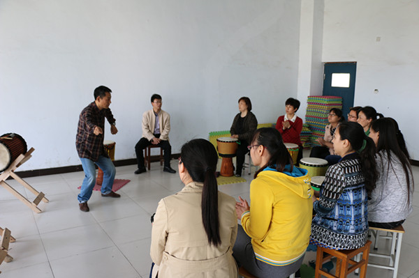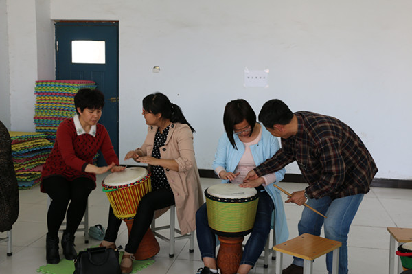 4月18日下午,社團正式開始上課,來自各個部門的教職工齊聚一堂,共同感受來自西非洲古老音樂的魅力。公共教學部的資深曼丁鼓手----馬洪勛老師,聲情并茂的為大家講解了曼丁鼓樂的起源和發(fā)展。說到動情處,還手舞足蹈,向大家展示非洲原始的舞蹈。隨后,在馬洪勛老師的指導和帶領下,大家一起拍起鼓,唱起西非洲民謠,課堂氣氛非常活躍,鼓聲雷雷,掌聲陣陣。課程自始至終,都充滿了濃濃的原始風情。一個多小時的課程眨眼就結束了,各位老師在愉快的課堂氛圍中,加深了對非洲文化的了解,并掌握了基本的樂理知識,許多老師表示,對接下來的課程充滿了期待。