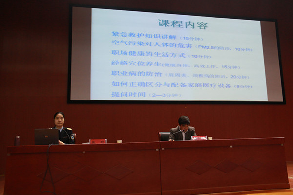 此次《共建安全健康河南》安全知識講座是由河南省全民健康促進會根據(jù)《全民健康素養(yǎng)促進行動規(guī)劃》(2014—2020)要求,為實施全民健康素養(yǎng)促進行動,貫徹落實公共衛(wèi)生工作“預(yù)防為主”的方針,而發(fā)動全省相關(guān)專家專門開展的大型公益宣傳活動之一。講座主要結(jié)合當(dāng)前嚴(yán)重的環(huán)境污染問題,緊扣人們關(guān)心的健康話題,圍繞遇到緊急情況和意外事故如何去自救和他救,如何改善亞健康,霧霾的防治以及一些肩周炎、頸椎病、三高病等如何去預(yù)防等健康知識,從專業(yè)角度展開講述,目標(biāo)明確,內(nèi)容豐富,生動形象并現(xiàn)場邀請了兩位老師進行專業(yè)演示。講座現(xiàn)場氣氛活躍,互動熱烈,對老師們的疑問,張珂老師也給予了詳細的解答。