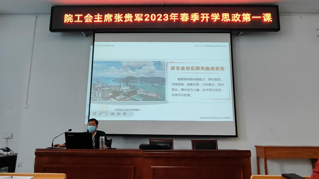 為深入學(xué)習(xí)宣傳貫徹習(xí)近平新時(shí)代中國(guó)特色社會(huì)主義思想和黨的二十大精神,加強(qiáng)大學(xué)生思想政治教育,培養(yǎng)學(xué)生愛(ài)國(guó)主義情感和高尚道德情操,3月15日下午,院工會(huì)主席張貴軍以《全面貫徹落實(shí)總體國(guó)家安全觀》為題,在教學(xué)樓B道德講堂為信息工程系師生講授開(kāi)學(xué)思政第一課。信息工程系主任陳曉紅及相關(guān)負(fù)責(zé)人與百余名學(xué)生代表一起聆聽(tīng)學(xué)習(xí)。會(huì)議由系黨總支副書(shū)記王旭主持。