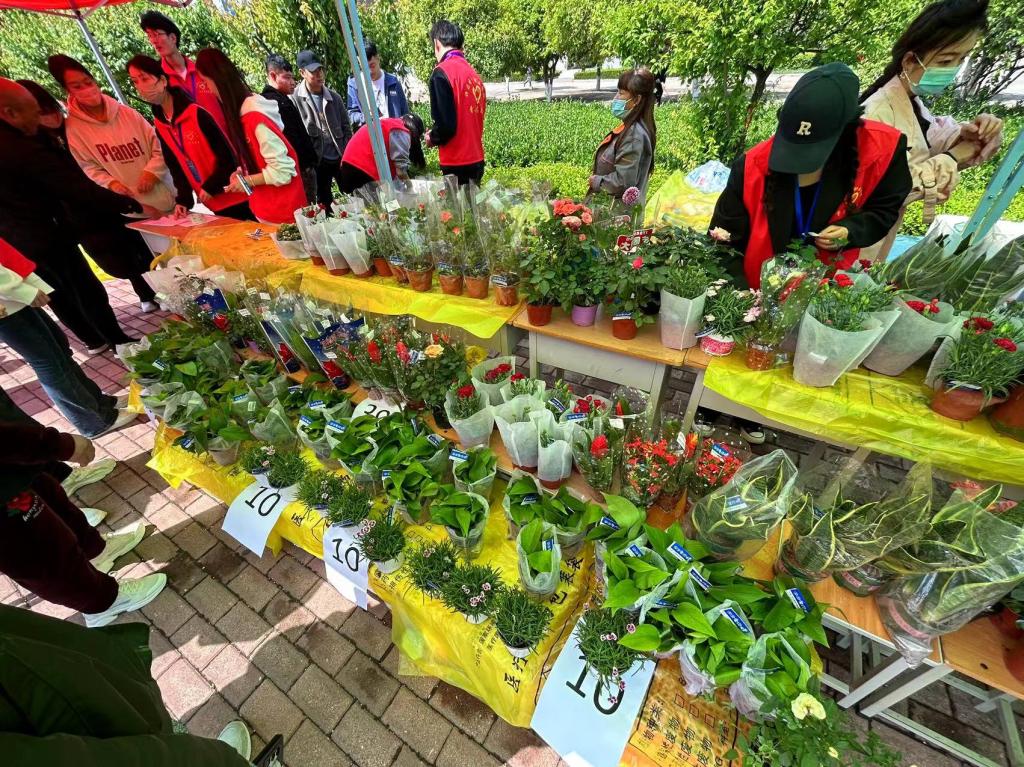 活動一開始,現(xiàn)場便排起了長隊。同學們用麻袋、塑料袋、紙箱裝滿了收集來的塑料瓶,等候兌換。大家挑選著心儀的綠植,志愿者耐心組織登記。