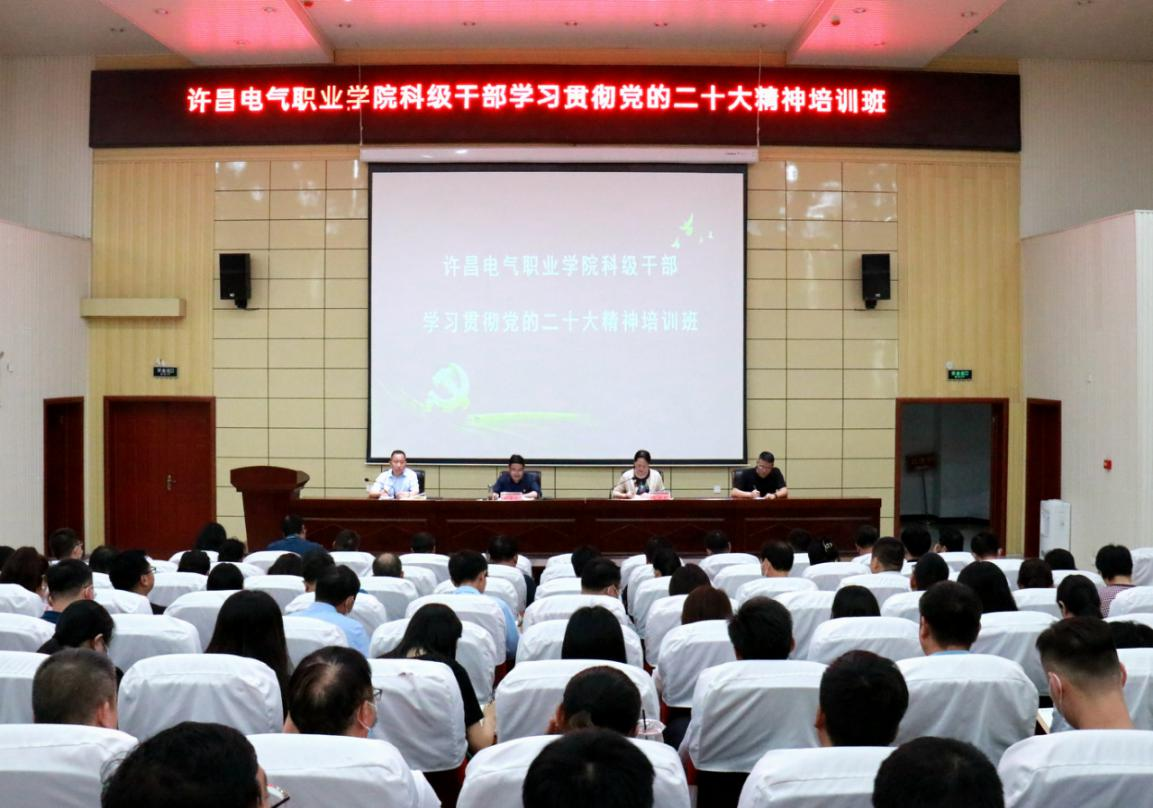 為深入學(xué)習(xí)貫徹黨的二十大精神,按照市委組織部通知要求,5月16日下午,許昌電氣職業(yè)學(xué)院科級(jí)干部學(xué)習(xí)貫徹黨的二十大精神集中培訓(xùn)班在學(xué)院二期報(bào)告廳開(kāi)班。院黨委書(shū)記彭占亭出席開(kāi)班式并作動(dòng)員講話,黨委副書(shū)記張明慧主持開(kāi)班式。黨委委員、組織部部長(zhǎng)張杰偉,黨委辦公室主任楊繼奎出席會(huì)議。學(xué)院全體科級(jí)干部和專職思政教師共計(jì)130余人參加培訓(xùn)。
