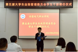 6月9日,學(xué)院第五屆大學(xué)生自我管理委員會(huì)學(xué)生干部聘任儀式在B教學(xué)樓111教室舉行。副院長朱東煜,學(xué)生處處長楊紅培,學(xué)生處副處長黃聰,機(jī)電工程系副主任王會(huì)峰,電氣工程系副書記杜瑞濤,藝術(shù)系團(tuán)總支書記白鴿,機(jī)電工程系團(tuán)總支書記程文浩,經(jīng)濟(jì)管理系團(tuán)總支書記孫妍哲,學(xué)生處學(xué)生管理科科長、院自管會(huì)指導(dǎo)老師卜偉松,以及各系輔導(dǎo)員老師代表出席了本次活動(dòng)。