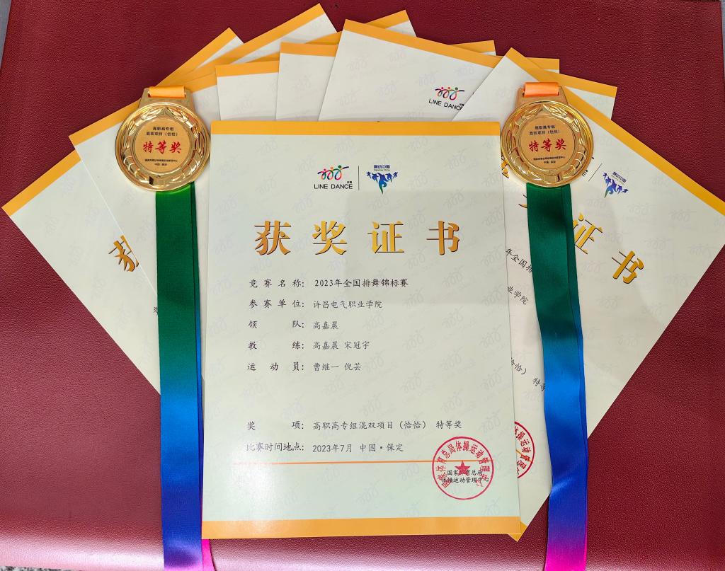 我校積極派出代表隊(duì)參加此次比賽,奔赴賽場(chǎng)前,高嘉晨、宋冠宇老師帶領(lǐng)學(xué)生克服困難于暑期期間在校集中訓(xùn)練,電氣工程系學(xué)生曹繼一、藝術(shù)系學(xué)生倪蕓經(jīng)過(guò)激烈角逐,最終獲得2023年全國(guó)排舞錦標(biāo)賽混雙組特等獎(jiǎng)第一名的優(yōu)異成績(jī)。高嘉晨、宋冠宇老師獲“優(yōu)秀教練員”榮譽(yù)稱號(hào)。