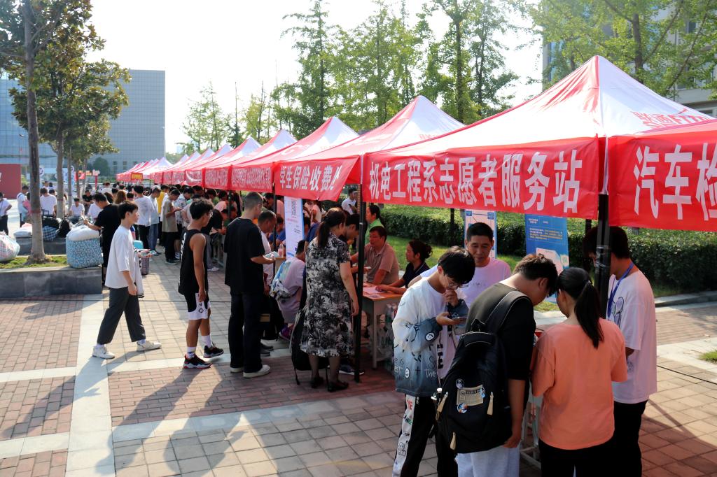 各系部積極籌備迎新工作,結(jié)合各系特色和專業(yè)特點(diǎn)設(shè)計(jì)了獨(dú)具匠心的報(bào)到點(diǎn),營造出濃厚的迎新氛圍。志愿者們駐守車站、校門口和報(bào)到點(diǎn),迎新接站、行李搬運(yùn)、校園引導(dǎo)、注冊報(bào)到、答疑解惑。“五顏六色的馬甲”活躍在校園的每個(gè)角落,極大地緩解了新生初入新環(huán)境的不安,為出行提供方便。