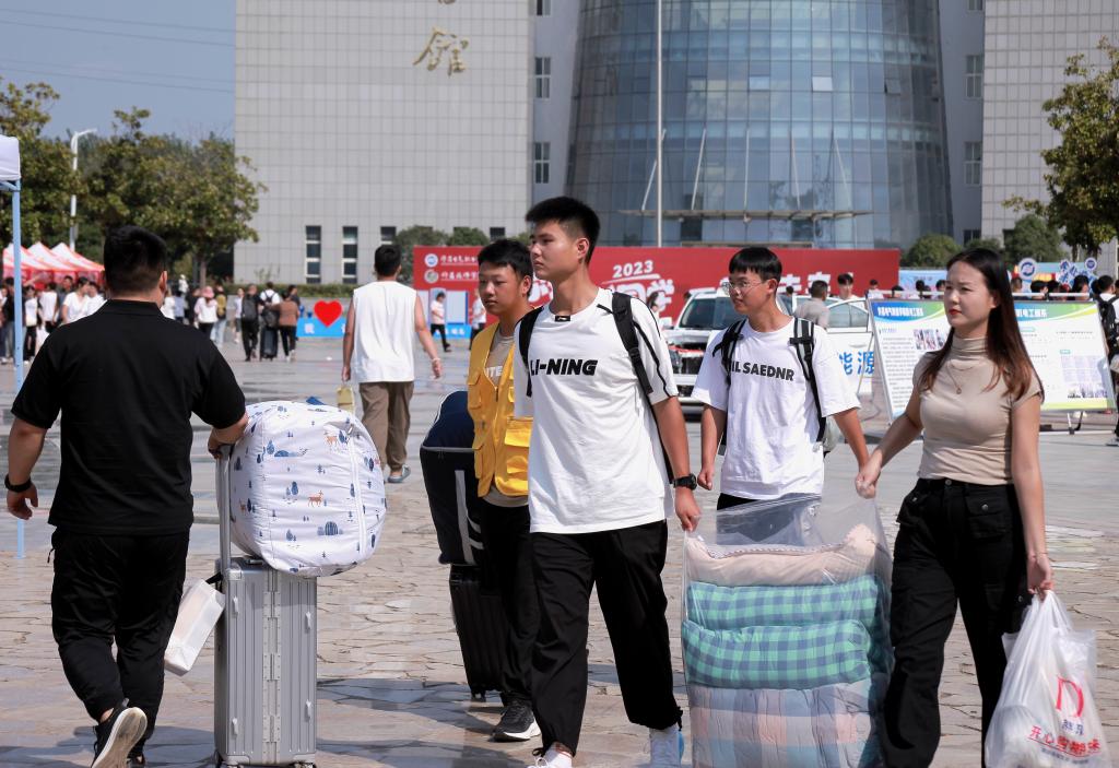校園里隨處可見的迎新橫幅,高大鮮艷的彩虹門、飄揚(yáng)的紅旗、歡迎新生的展板,廣播中輕松歡快的歌曲,整個(gè)校園洋溢著喜慶、歡樂的氣氛,學(xué)院敞開懷抱,迎接來自各地的學(xué)子。