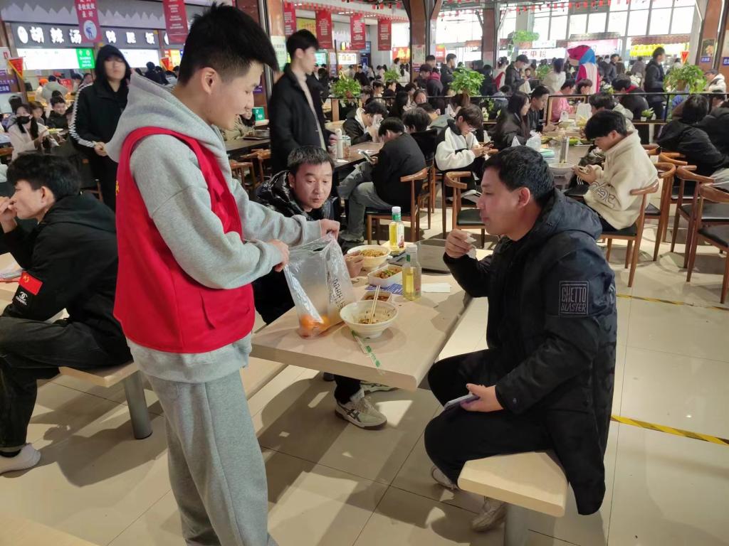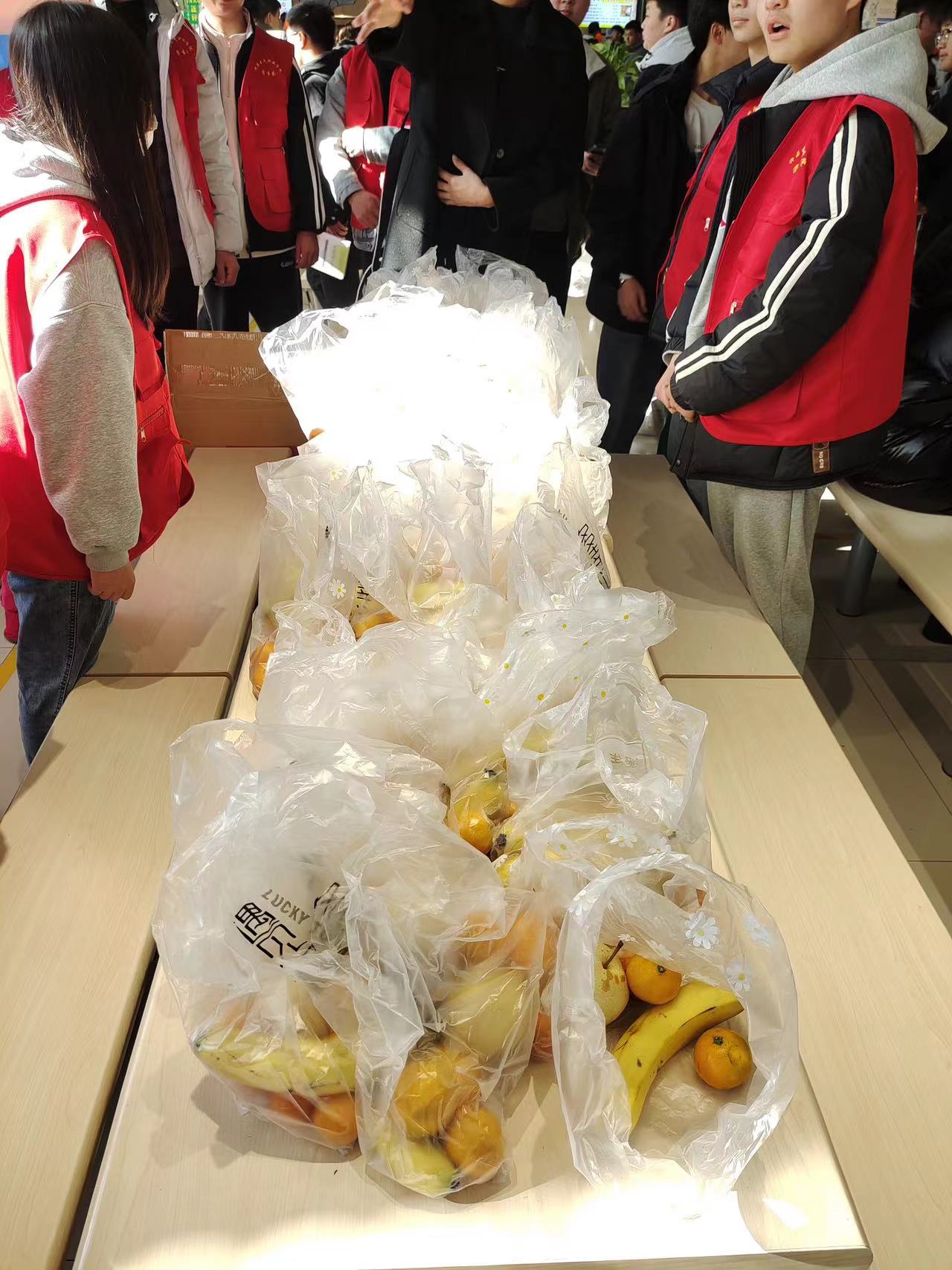 學生會成員為“光盤”師生送上包裝精美的水果。