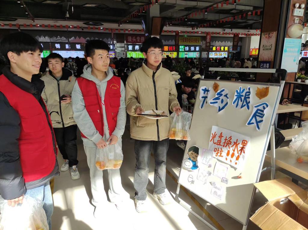 一粥一飯,當思來之不易;半絲半縷,恒念物力維艱。為切實加強勤儉節(jié)約的傳統(tǒng)美德教育,引領(lǐng)廣大師生做健康飲食的倡導者、光盤行動的踐行者、杜絕浪費的示范者。12月7日,院學生會在一期、二期餐廳開展了“吃光飯飯,團團送你大吉(桔)大利(梨)”活動。