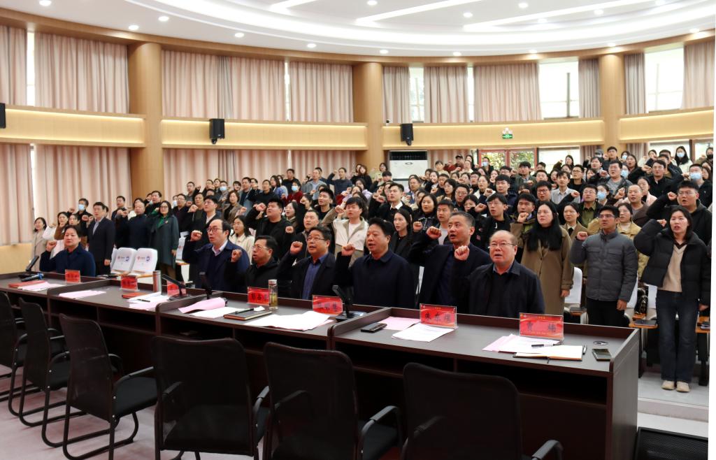 會議期間,黨委副書記張明慧宣讀了新進工作人員錄用文件,對新進教師畢業(yè)院校及所學(xué)專業(yè)進行了逐一介紹,帶領(lǐng)全體參會教職工進行了宣誓;副院長張俊才宣讀了“弘揚踐行教育家精神”活動實施方案及工作要求;青年教師代表韓基偉、新入職教師代表杜彤彤進行了交流發(fā)言。