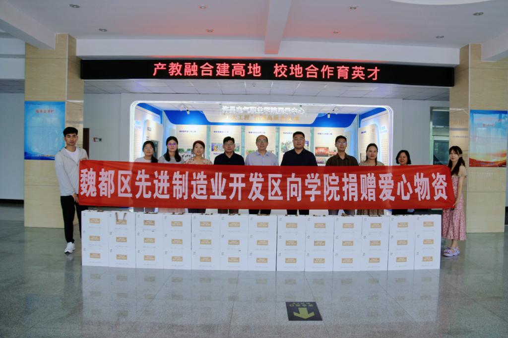 副院長賈楠代表學(xué)校表達(dá)了對管委會愛心義舉的感謝,表示學(xué)校將盡快把這些愛心物資發(fā)放給教職工,用于防暑、加班和值班的營養(yǎng)補(bǔ)充。賈楠指出,產(chǎn)教融合建高地,校地合作育英才。學(xué)院與管委會轄區(qū)相鄰、發(fā)展相融,長期共建、友誼深厚。相信雙方一定會加深友誼,在市委、市政府和魏都區(qū)委、區(qū)政府的領(lǐng)導(dǎo)支持下,進(jìn)一步深化合作,下一步學(xué)院將繼續(xù)發(fā)揮自身優(yōu)勢,以服務(wù)地方政府和區(qū)域社會經(jīng)濟(jì)發(fā)展為使命擔(dān)當(dāng),秉持“共商、共建、共享”的全新理念,深化學(xué)院與管委會以及西門子等四單位合作共建“中德先進(jìn)制造業(yè)產(chǎn)業(yè)學(xué)院和產(chǎn)教融合創(chuàng)新賦能中心”的合作,圍繞先進(jìn)制造業(yè)轉(zhuǎn)型升級和企業(yè)創(chuàng)新發(fā)展的需求為導(dǎo)向,共同打造先進(jìn)制造業(yè)創(chuàng)新發(fā)展新高地,在與地方政府、企業(yè)行業(yè)的合作中實(shí)現(xiàn)優(yōu)勢互補(bǔ)、利益同享,進(jìn)一步增強(qiáng)學(xué)校發(fā)展的后勁和活力,為魏都區(qū)先進(jìn)制造業(yè)開發(fā)區(qū)地方產(chǎn)業(yè)發(fā)展和升級貢獻(xiàn)許電力量,譜寫助力新質(zhì)生產(chǎn)力發(fā)展、城鄉(xiāng)融合共同富裕以及高素質(zhì)高技能人才培養(yǎng)的新篇章!