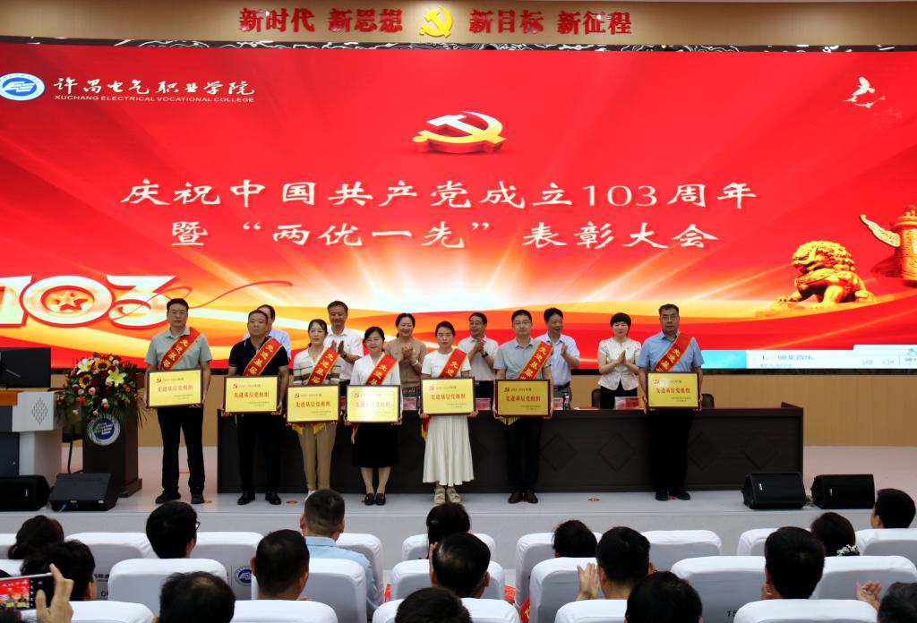 表彰大會在雄壯的國歌聲中拉開帷幕。院黨委書記彭占亭代表學(xué)院黨委向受到表彰的基層黨組織和個人表示熱烈的祝賀!向?qū)W院全體黨員致以節(jié)日的問候!彭占亭回顧了一年來,學(xué)院黨建工作取得的成效,號召全校廣大黨員以先進典型為標(biāo)桿,將榜樣力量轉(zhuǎn)化為攻堅克難、砥礪奮進的強大動力,各級黨組織和廣大黨員干部要抓住職業(yè)教育大發(fā)展的機遇,強質(zhì)量、補短板,重發(fā)展、找差距,以“黨建高質(zhì)量”為標(biāo)準(zhǔn),進一步強化從嚴治黨責(zé)任;以“三項機制”為導(dǎo)向,進一步強化干部隊伍建設(shè);以“規(guī)范過硬”為目標(biāo),進一步強化基層組織建設(shè);以“敬業(yè)奉獻”為標(biāo)尺,進一步強化先鋒模范引領(lǐng)作用,加快建設(shè)“有遠見卓識、有創(chuàng)新精神、有責(zé)任擔(dān)當(dāng)、有文化品位”的“四有”高校,帶領(lǐng)全院師生在實現(xiàn)“強校夢”的進程中實現(xiàn)自己的“育人夢”“成才夢”,書寫“中國夢”的電氣學(xué)院新篇章,以優(yōu)異成績和嶄新面貌向黨的生日獻禮!