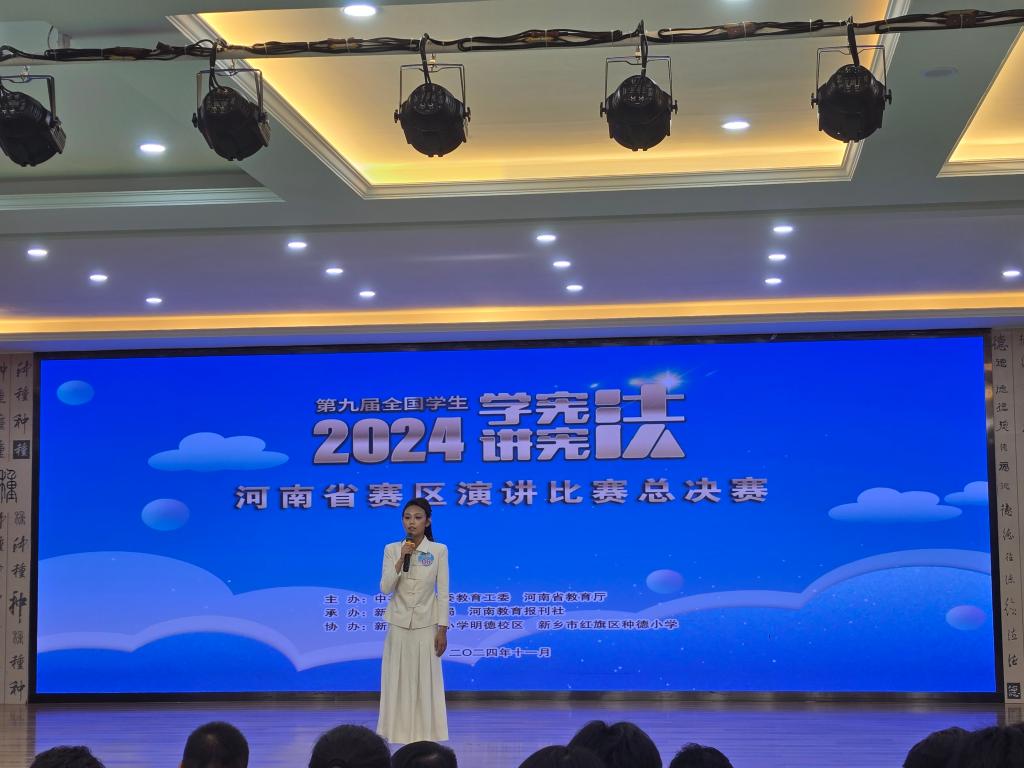 為深入學習貫徹黨的二十屆三中全會精神,持續(xù)推進青少年憲法法治宣傳教育,由省委教育工委、省教育廳主辦的第九屆全國學生“學憲法 講憲法”活動河南省賽區(qū)總決賽于11月8日在新鄉(xiāng)落下帷幕。我校藝術與設計學院23級播音與主持班學生于豪麗在演講比賽中榮獲高校組一等獎,實現了學校在此賽事上的新開端。