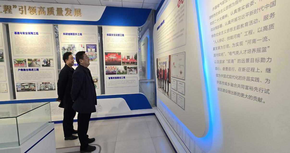 1月14日下午,河南省教育廳二級(jí)巡視員、人事處處長(zhǎng)張水潮,省教育廳人事處四級(jí)調(diào)研員張銀濤,許昌市教育局局長(zhǎng)、市委教育工委副書記劉慶,市委教育工委專職委員王彥浩等一行,到我院就人才隊(duì)伍建設(shè)、人事管理等相關(guān)工作展開深入考察調(diào)研,院長(zhǎng)高遠(yuǎn)浩、黨委副書記張明慧及相關(guān)部門負(fù)責(zé)人陪同調(diào)研。