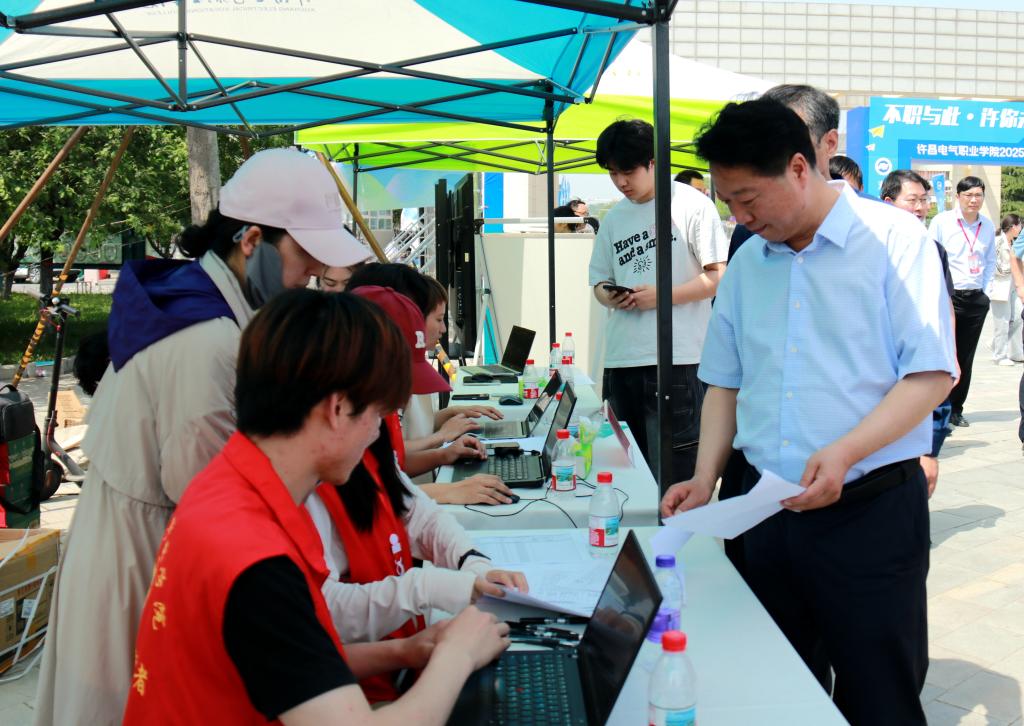 為加快構(gòu)建高校畢業(yè)生高質(zhì)量就業(yè)服務(wù)體系,搶抓就業(yè)工作關(guān)鍵期,全力促進(jìn)畢業(yè)生充分就業(yè),4月18日,由河南省教育廳指導(dǎo)、許昌電氣職業(yè)學(xué)院主辦的“不職與此·許你未來”2025屆畢業(yè)生春季雙向選擇洽談會(huì)在學(xué)院西門廣場(chǎng)舉行。