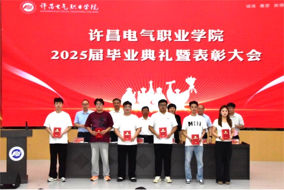 典禮伊始,全場師生莊嚴(yán)肅立,齊聲高唱國歌。嘹亮的歌聲在會(huì)場激蕩,承載著對(duì)祖國的無限熱愛,也為這場充滿希望與榮耀的盛會(huì)奠定了激昂基調(diào)。會(huì)上介紹了2025屆畢業(yè)生專升本情況,宣讀了《許昌電氣職業(yè)學(xué)院關(guān)于辦理2025年普通專科學(xué)歷證書的報(bào)告》、《河南省教育廳關(guān)于表彰2025年河南省優(yōu)秀應(yīng)屆大中專畢業(yè)生的通知》、《許昌電氣職業(yè)學(xué)院關(guān)于表彰2025年優(yōu)秀應(yīng)屆大中專畢業(yè)生的決定》。