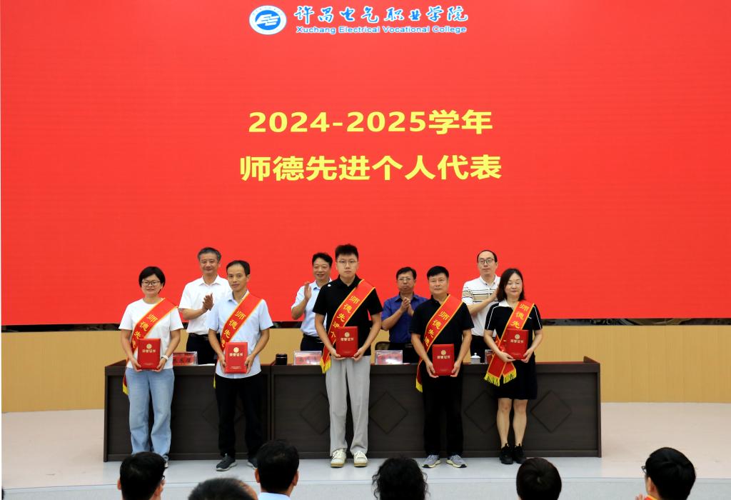 會(huì)上,賈楠宣讀了《許昌電氣職業(yè)學(xué)院關(guān)于表?yè)P(yáng)河南省第二十屆大學(xué)生科技文化藝術(shù)活動(dòng)獲獎(jiǎng)教師的決定》、《許昌電氣職業(yè)學(xué)院關(guān)于表彰2024—2025學(xué)年優(yōu)秀輔導(dǎo)員(班主任)的決定》、《許昌電氣職業(yè)學(xué)院關(guān)于表彰2025年度先進(jìn)個(gè)人的決定》。朱東煜宣讀了《許昌電氣職業(yè)學(xué)院關(guān)于表彰第十七屆“挑戰(zhàn)杯”河南省大學(xué)生課外學(xué)術(shù)科技作品競(jìng)賽獲獎(jiǎng)教師的決定》、《許昌電氣職業(yè)學(xué)院關(guān)于表彰2024—2025學(xué)年職業(yè)技能競(jìng)賽獲獎(jiǎng)教師的決定》、《許昌電氣職業(yè)學(xué)院關(guān)于表彰2024—2025學(xué)年教學(xué)競(jìng)賽獲獎(jiǎng)教師的決定》。張貴軍宣讀了《許昌電氣職業(yè)學(xué)院關(guān)于表?yè)P(yáng)2024年度考核優(yōu)秀單位的通報(bào)》。