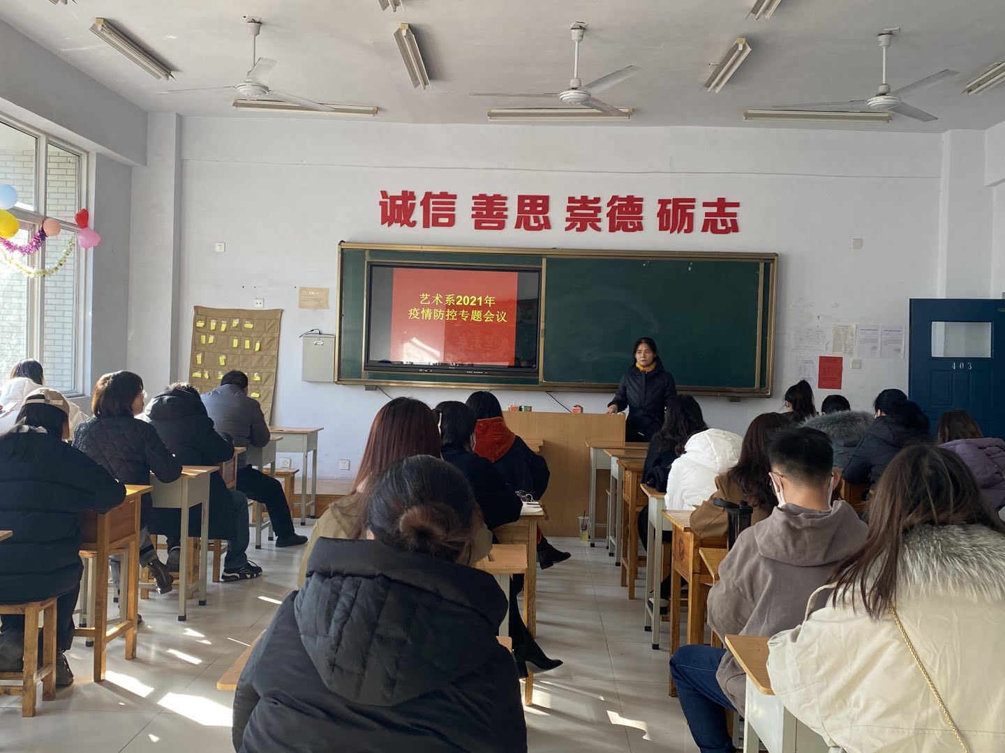 ????根據(jù)學(xué)院疫情防控工作部署,確保寒假期間疫情防控工作有序開(kāi)展, 1月14日藝術(shù)系召開(kāi)2021年疫情防控專題會(huì)議。藝術(shù)系負(fù)責(zé)人閻瑾瑜、董淑紅主持會(huì)議,全體專兼職教師、合作辦學(xué)單位負(fù)責(zé)人及輔導(dǎo)員、班主任參會(huì)。