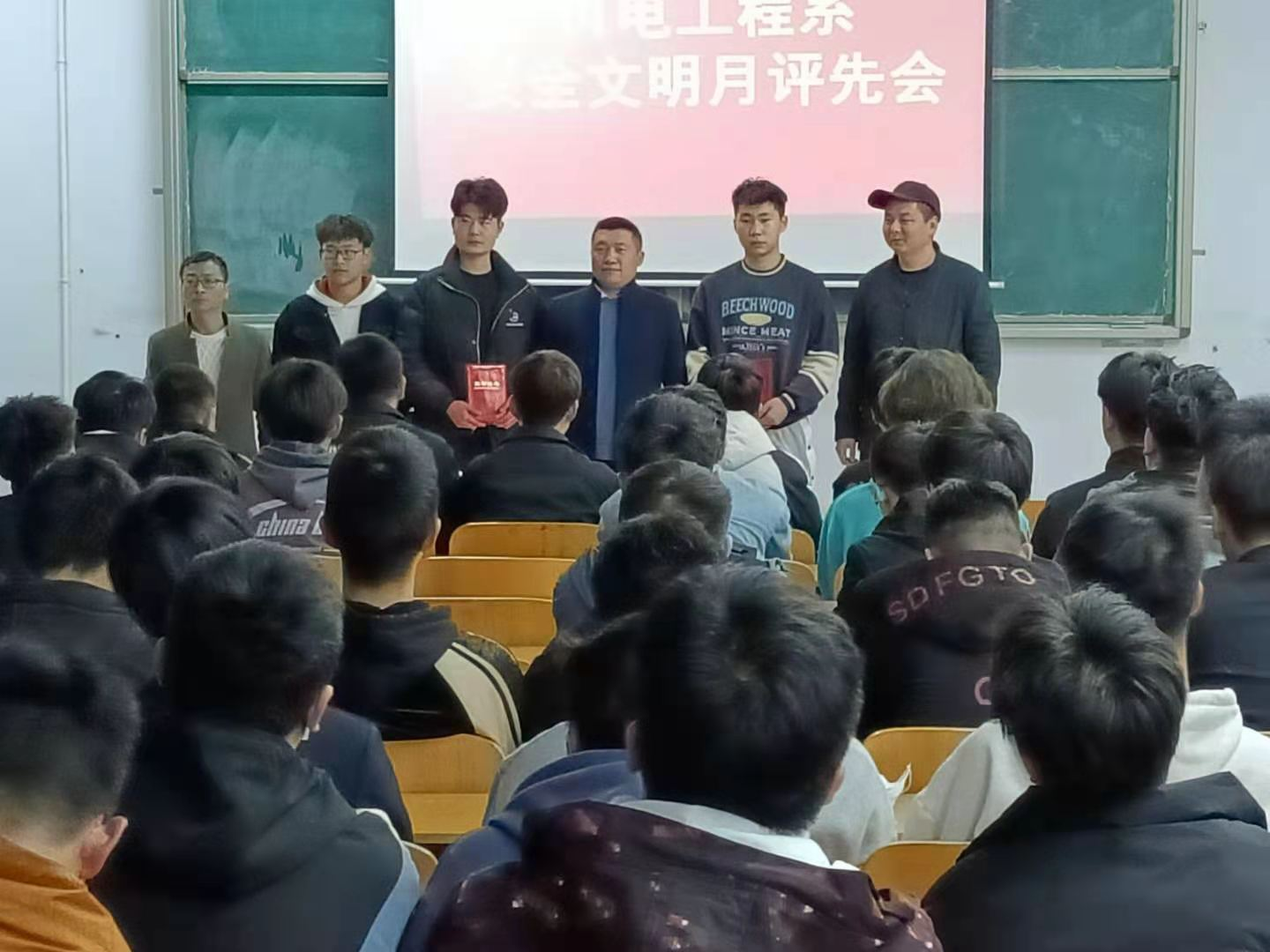 ????機電工程系“安全文明月”活動已經(jīng)連續(xù)開展了五年。本次活動自2020年底開始籌劃,于今年3月初結(jié)束,歷時兩個多月,本次活動共參與班級53個,宿舍69個,學生135名,參與安全知識競賽學生191名。經(jīng)過長期考核、不定期抽查、考試競賽等不同形式,最終評選出安全文明班級6個,安全文明宿舍15個,安全文明個人30名,安全知識競賽成績優(yōu)異學生30名。3月17日,機電工程系學管團隊在教學樓A411對以上學生和宿舍予以了表彰。