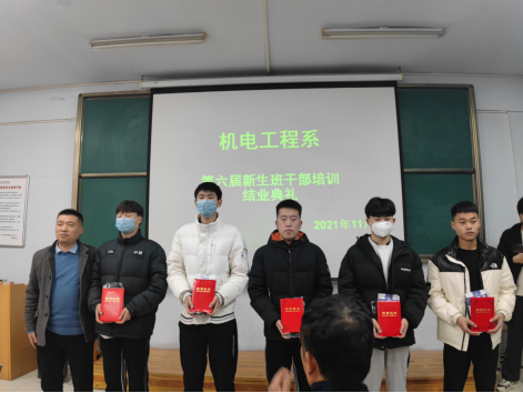 11月30日,機(jī)電工程系在教學(xué)樓A411舉行新生學(xué)生干部培訓(xùn)班結(jié)業(yè)典禮,對(duì)班干培訓(xùn)學(xué)員進(jìn)行表彰總結(jié),機(jī)電工程系負(fù)責(zé)人張紅凱、馮振華,系團(tuán)總支杜羽老師,系學(xué)生科王會(huì)峰老師、程文浩老師出席本次結(jié)業(yè)典禮。