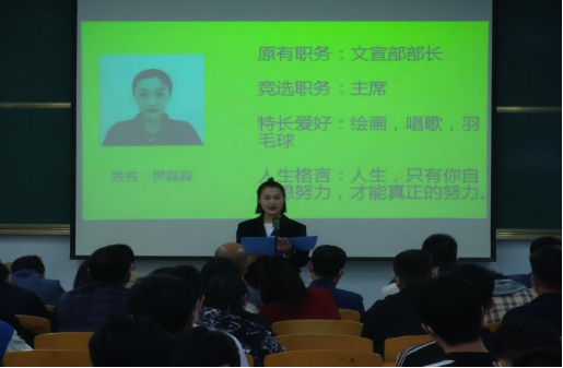 此次大會(huì)共進(jìn)行了七項(xiàng)議程,最精彩的部分當(dāng)屬學(xué)管會(huì)主席團(tuán)競(jìng)選演講及答辯環(huán)節(jié)。他們個(gè)個(gè)精神飽滿(mǎn)、談吐大方、表情自然,以昂揚(yáng)的姿態(tài)講出自己在自管會(huì)中的心得和對(duì)下一屆工作的計(jì)劃和安排,博得了老師和同學(xué)們熱烈的掌聲。