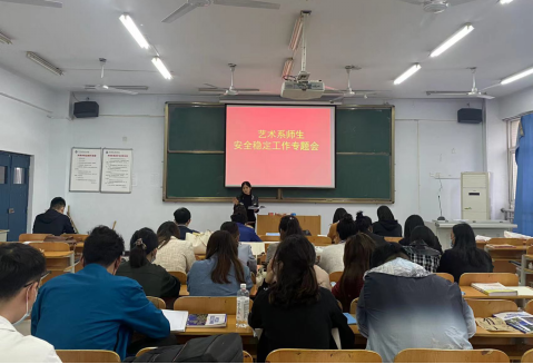 4月30日下午四點,藝術(shù)系在教A311教室召開師生安全穩(wěn)定專題會議,全體教職工及輔導員(班主任)參加會議。