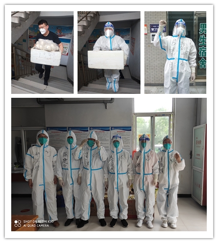 疫情戰(zhàn)斗的沖鋒員——杜瑞濤、軒建舉,兩位樓長在前期教師人員少、工作強(qiáng)度大、精神壓力大、工作時間長的情況下,圓滿完成B、E棟宿舍2500多名學(xué)生的送餐、核酸檢測、值班任務(wù)。他們和突擊隊(duì)成員一起完成每日兩次的核酸檢測,又帶領(lǐng)男同志完成一日三次的搬餐、送餐任務(wù)。由于人員奇缺,他們又想讓同志們多休息一下,主動完成每日超過12小時的值班任務(wù)。每天的工作時長在18小時以上,經(jīng)常凌晨2、3點(diǎn)還要處理突發(fā)情況,早晨5點(diǎn)又開始新的任務(wù)。