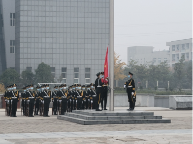 七點(diǎn)二十分,升旗儀式正式開(kāi)始。迎著微微寒風(fēng),學(xué)院國(guó)旗護(hù)衛(wèi)隊(duì)邁著鏗鏘有力的步伐來(lái)到了國(guó)旗臺(tái)下,全場(chǎng)一片肅靜。在激昂的《義勇軍進(jìn)行曲》中,升旗手振臂一揮,鮮艷的五星紅旗徐徐展開(kāi),在全體在場(chǎng)人員的注目中,在晨曦中迎風(fēng)飄揚(yáng)在學(xué)院廣場(chǎng)的上空。