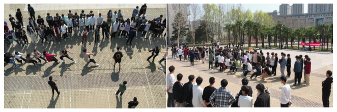 3月14日下午三點(diǎn),信息工程系21級(jí)軟件技術(shù)8班、藝術(shù)系21級(jí)嬰幼兒編程1班學(xué)生及輔導(dǎo)員在圖書館前魏都廣場(chǎng)聚合,以互動(dòng)游戲?yàn)橹鳎虚g穿插兩班級(jí)同學(xué)精心準(zhǔn)備的歌舞表演,兩班學(xué)生在陣陣歡聲笑語中打成一片。