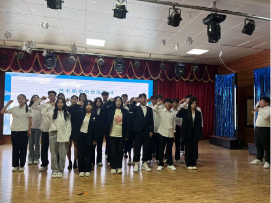 隨后,藝術(shù)系委員會第六屆執(zhí)行主席蔡祺凡同學(xué)發(fā)表演講,并表示將不負老師和同學(xué)們的信賴與期待,認真工作,迎難而上。委員會部長代表劉雨發(fā)表演講,她表示一定能堅定信心,有迎難而上的勇氣和解決問題的智慧,成就自己,貢獻團隊。并由第六屆委員會主席蔡祺凡帶領(lǐng)新一屆委員會干部們莊嚴(yán)宣誓。