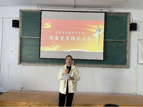 為進(jìn)一步加強(qiáng)黨員隊(duì)伍建設(shè),增強(qiáng)黨員隊(duì)伍的生機(jī)和活力,藝術(shù)系黨總支于11月22號(hào)下午在教A310教室召開了預(yù)備黨員轉(zhuǎn)正支部大會(huì)。藝術(shù)系黨總支副書記王俊平、副主任路慶敏、副主任白鴿及黨政辦主任劉潵潵、團(tuán)總支書記張世浩參加了會(huì)議。會(huì)議由張世浩主持。