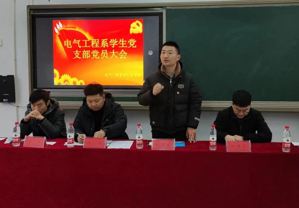 為貫徹落實(shí)黨員的發(fā)展要求,切實(shí)提高黨員發(fā)展質(zhì)量,增強(qiáng)黨支部的凝聚力和戰(zhàn)斗力。12月13日下午,電氣工程系在教學(xué)樓A114教室召開了學(xué)生黨支部預(yù)備黨員接收大會(huì),電氣工程系黨總支副書記、學(xué)生黨支部書記杜瑞濤,宣傳委員盧婷,學(xué)生黨支部全體黨員老師出席本次會(huì)議。組織委員李源主持會(huì)議。