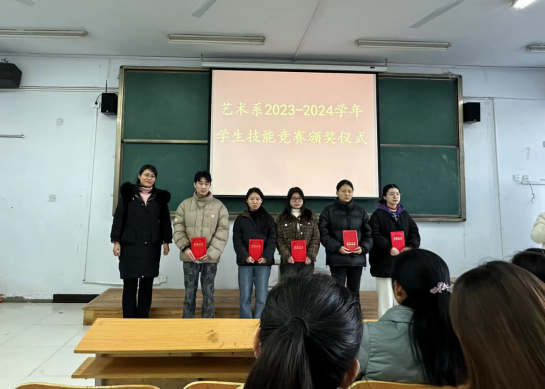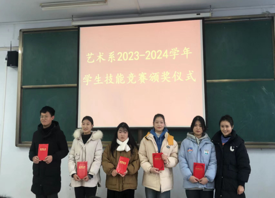 職業(yè)技能大賽是職業(yè)教育的試金石、風向標,是提升教育教學改革質量的重要載體,更是學生專業(yè)技能和各專業(yè)教學成果的體現。經過12月中上旬藝術系各賽項的激烈角逐和評委老師公平公正的打分,各賽項公開評選出一等獎、二等獎和三等獎獲獎學生。為激勵學生繼續(xù)努力,扎實學習,藝術系于2023年12月21日下午在教A311教室隆重舉辦了本次職業(yè)技能大賽頒獎儀式,藝術系黨總支書記董淑紅、系主任閻瑾瑜、系副主任白鴿、藝術設計教研室主任徐翊軒、藝術系幼兒教育教研室主任李炎潔及各專業(yè)課教師參加了頒獎儀式,儀式由黨總支副書記王俊平主持。