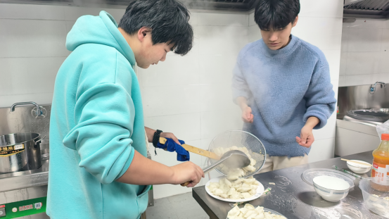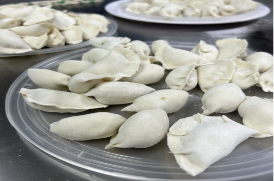 暖心而熱烈的開場(chǎng)后,包餃子正式開始。領(lǐng)導(dǎo)老師及同學(xué)們圍坐在餐桌旁,協(xié)助動(dòng)手,有的包,有的擺,豬肉香菇餡、鮮肉玉米餡、韭菜雞蛋餡等,有的動(dòng)作熟練、有的現(xiàn)學(xué)現(xiàn)做,一個(gè)個(gè)奇怪的、可愛的、圓潤(rùn)的餃子慢慢的擺滿了桌面。包完就開始煮,一盤盤餃子出鍋,老師們、同學(xué)們一邊吃一邊聊,氣氛歡快愉悅。小小的餃子,傳遞著大大的關(guān)愛,也裝滿了藝術(shù)系全體師生的快樂心情。