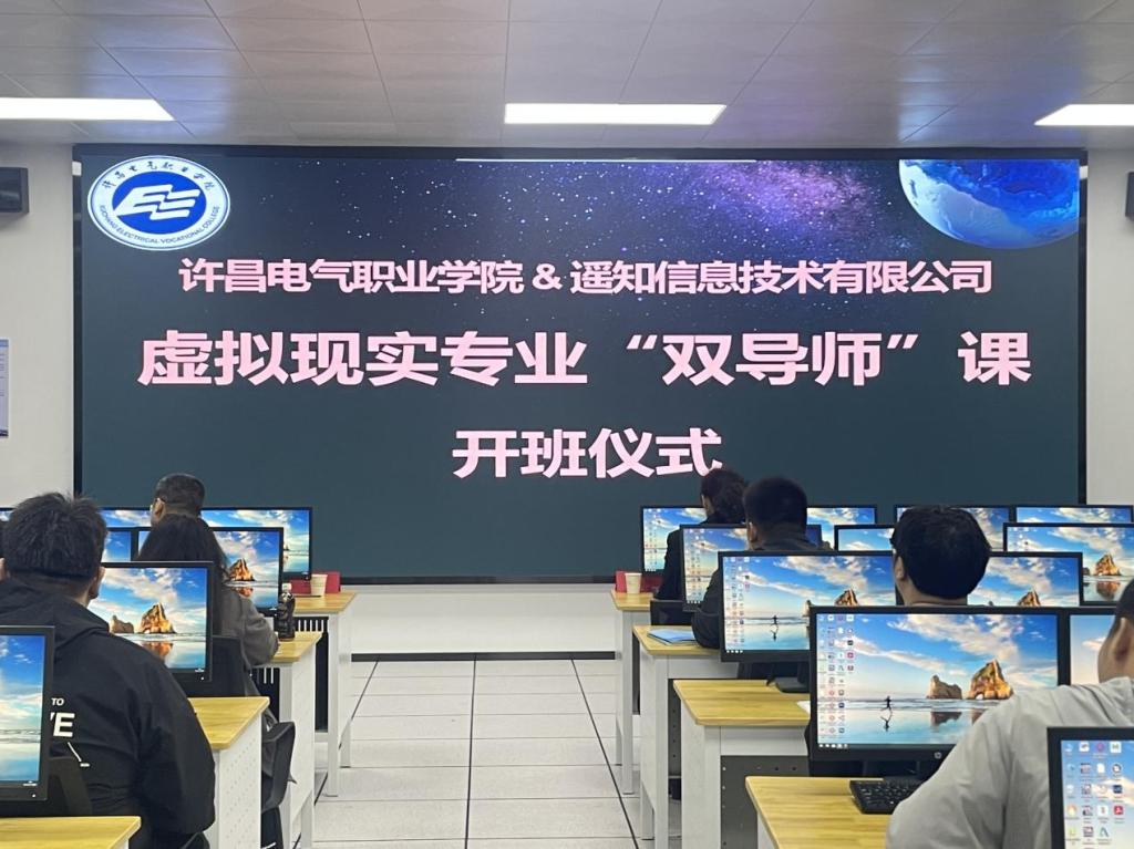 4月15日上午,由信息工程系與上海遙知信息技術(shù)有限公司共同舉辦的虛擬現(xiàn)實(shí)專業(yè)雙導(dǎo)師課程在實(shí)訓(xùn)A二樓VR實(shí)訓(xùn)室舉行開(kāi)班儀式。信息工程系副主任郭赟、系黨總支副書(shū)記王旭、副主任李祿源及相關(guān)負(fù)責(zé)人出席了本次開(kāi)班儀式。儀式由虛擬現(xiàn)實(shí)專業(yè)專業(yè)負(fù)責(zé)人李紅亞主持。