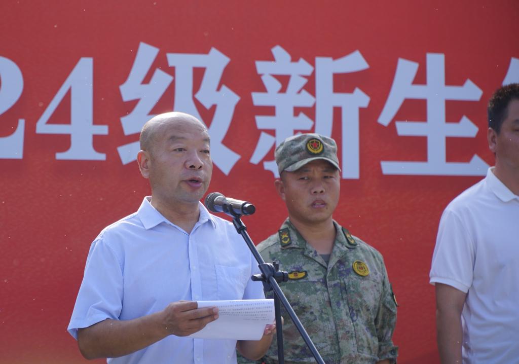 學(xué)院黨總支書記劉建剛發(fā)表動員講話,向本次軍訓(xùn)全體教官表示誠摯感謝,向全體參訓(xùn)同學(xué)表示親切問候并提出三點要求:一是要充分認(rèn)識軍訓(xùn)的意義,增強(qiáng)搞好軍訓(xùn)的自覺性。二是要以振奮的精神狀態(tài),接受軍訓(xùn)的錘煉,出色完成訓(xùn)練任務(wù)。三是要聚精會神搞好軍訓(xùn),嚴(yán)格遵守校規(guī)校紀(jì)和各項規(guī)章制度。