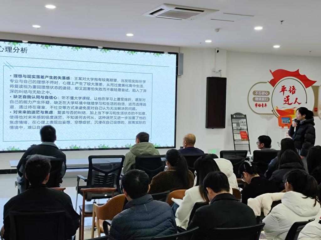 活動第一階段聚焦班級實際案例呈現(xiàn),重點從學(xué)生心理問題關(guān)懷與疏導(dǎo)、學(xué)業(yè)的幫扶與指導(dǎo)方面開展深入分析交流,旨在提高輔導(dǎo)員處理學(xué)生心理健康、危機(jī)干預(yù)的經(jīng)驗,程文浩、尚戰(zhàn)統(tǒng)、楊亞靜、吳彤、陳怡君先后分享題為《淺談后進(jìn)生的教育與培養(yǎng)》、《大學(xué)生心理健康》、《破專業(yè)迷茫之繭,引學(xué)生心靈歸航》、《于無聲處育繁花》、《關(guān)注學(xué)生內(nèi)心,助力健康成長》精彩案例,貼近事實,參會輔導(dǎo)員感同身受。豐富提升了與學(xué)生建立良好關(guān)系、有效溝通的手段。