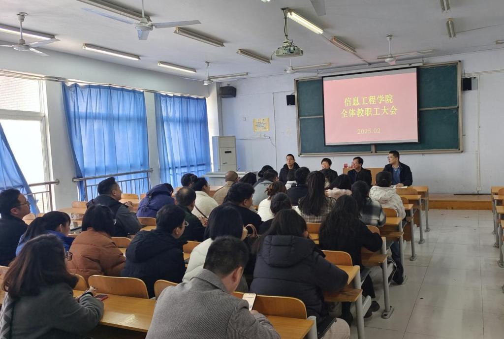2月27日,信息工程學(xué)院在教A310召開新學(xué)期全體教職工大會(huì)。院工會(huì)主席張貴軍出席會(huì)議并發(fā)表總結(jié)講話,信息工程學(xué)院黨政負(fù)責(zé)人及全體教職工齊聚一堂,共同回顧過往,展望新學(xué)期發(fā)展藍(lán)圖,為學(xué)院新征程奠定堅(jiān)實(shí)基礎(chǔ)。會(huì)議由行政負(fù)責(zé)人王旭主持。