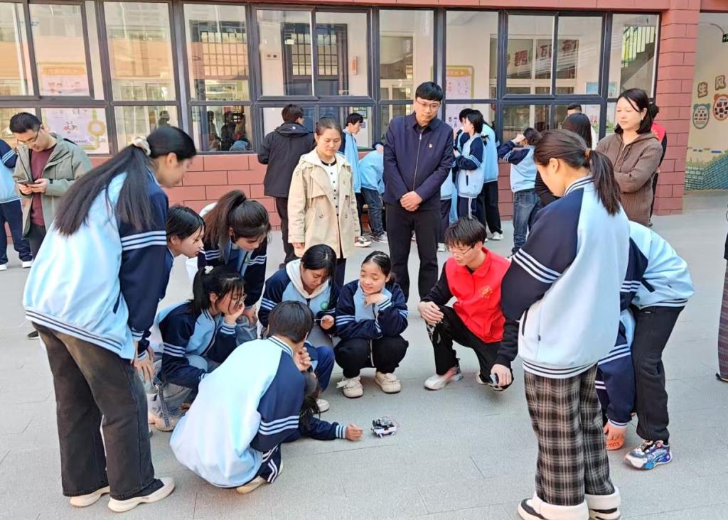 活動伊始志愿者帶著自己制作的小電子產(chǎn)品給同學(xué)們參觀分享。這兩款小產(chǎn)品能夠使用手機(jī)連接控制從而實現(xiàn)各種運動,可將其應(yīng)用于不同場景。志愿者講解完畢后,邀請同學(xué)們進(jìn)行互動體驗,增加了科技魅力的親身體驗感,大家臉上都洋溢著歡樂的笑容!